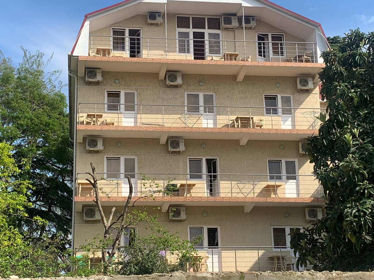 Все номера отеля оснащены кондиционером, телевизором, холодильником, душевой комнатой с санузлом. В каждом номере есть выход на балкон (общий на 3 номера).